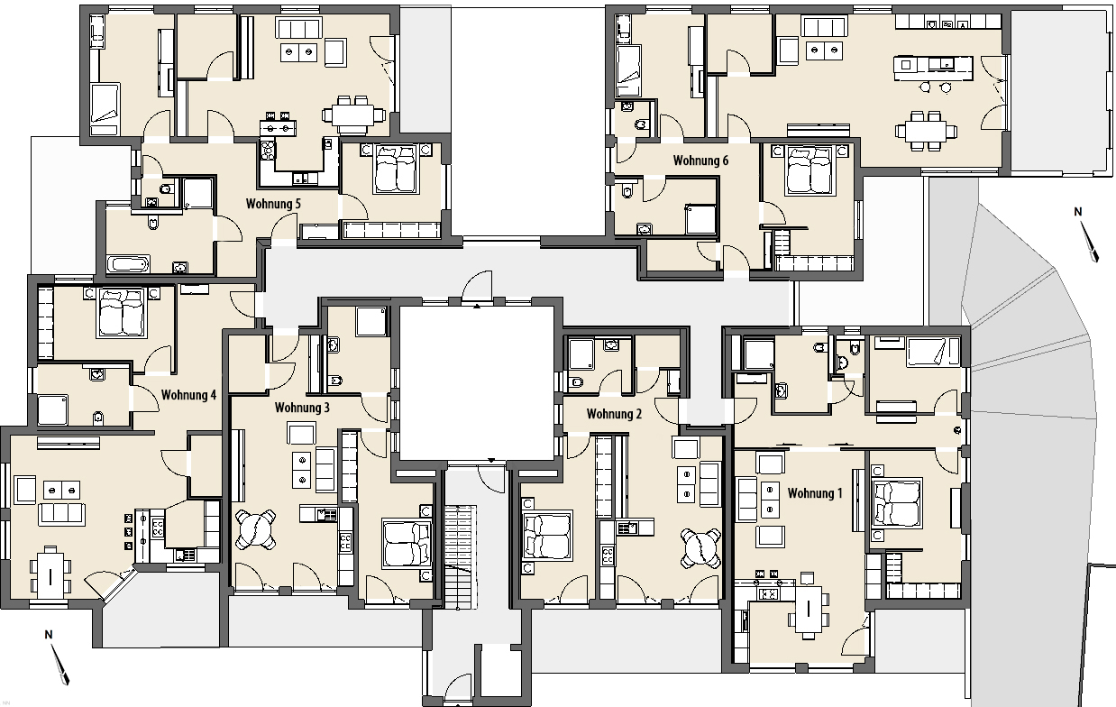 Verschaffen Sie sich einen Überblick über die Raumaufteilung und das Raumkonzept unserer Wohnungen.